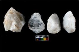 | Description / विवरण | There are n-4 of intact utilized flake cores made up of Quartz. Some of them have bulge of percussion and some are flat flakes. |