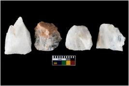 | Description / विवरण | There are n-4 of intact utilized flake cores made up of Quartz. Some of them have bulge of percussion and some are flat flakes. |