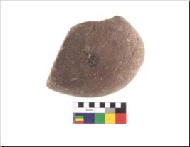 | Description / विवरण | A broken stone artefacts of a hammer stone. |