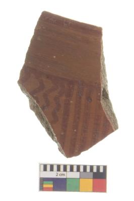 | Description / विवरण | Specimen of red ware with decorative red pigment. |