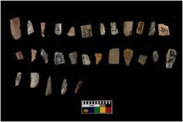 | Description / विवरण | THERE ARE TOTAL N- 29 MICROLITHS IN THE ASSEMBLANGE . AMONG THEM N-13 ARE MADE OF CHERT AND N-16 ARE MADE OF QUARTZ . OUT OF WHICH MOST ARE RETOUCHED ALL ALONG THE SIDES , SOME ARE TRIANGLE AND BLUNTED BACK BLADE . REST ARE DEBITAGES . |