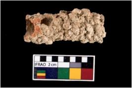 | Description / विवरण | A partially broken specimen of a hand made tubelar tobacco pipe with a broken end . It is red in color and it is having rough surface. |