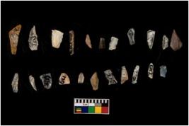 | Description / विवरण | THERE ARE TOTAL N- 22 MICROLITHS IN THE ASSEMBLANGE . AMONG THEM N-10 ARE MADE OF CHERT AND N-12 ARE MADE OF QUARTZ . OUT OF WHICH MOST ARE RETOUCHED ALL ALONG THE SIDES . SOME ARE TRIANGLE AND BLUNTED BACK BLADES . REST ARE DEBITAGES . |