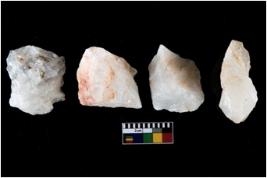 | Description / विवरण | There are n-4 of intact utilized flake cores made up of Quartz. Some of them have bulge of percussion and some are flat flakes. |