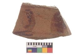 | Description / विवरण | Specimen of red ware with decorative red pigment. |