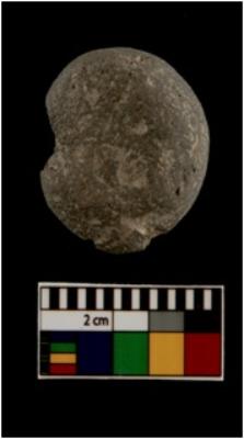 | Description / विवरण | A partially broken specimen of a circular shaped terracotta sealing made of grey ware |