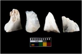 | Description / विवरण | There are n-4 of intact utilized flake cores made up of Quartz. Some of them have bulge of percussion and some are flat flakes. |