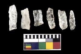 | Description / विवरण | Microlithic blades of varying sizes with very clear marks of utilisation. One of the blade has crested guiding ridge. |
