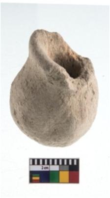 | Description / विवरण | A partially broken specimen red ware globular toy pot with featureless rounded flaring rim. It is made of medium - coarse grained clay . It is a wheel made pot and it is medium fired. |