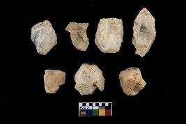 | Description / विवरण | Microlithic blade cores of varying sizes and raw material. Three of among these are fluted cores. |