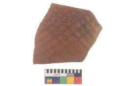 | Description / विवरण | Specimen of red ware with decorative geometric Net Pattern painting. |