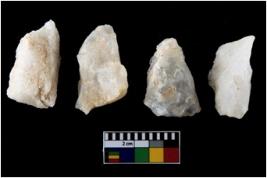 | Description / विवरण | There are n-4 of intact utilized flake cores made up of Quartz. Some of them have bulge of percussion and some are flat flakes. |