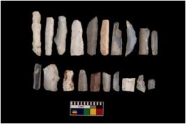 | Description / विवरण | These are 20 microlithic blades made on chalcedony. Among all, 2 are backed blades, 2 denticulated blades and 1 crested guiding ridge blades. |