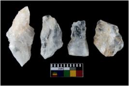 | Description / विवरण | There are n-4 of intact utilized flake cores made up of Quartz. Some of them have bulge of percussion and some are flat flakes. |