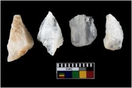 | Description / विवरण | There are n-4 of intact utilized flake cores made up of Quartz. Some of them have bulge of percussion and some are flat flakes. |
