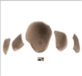 | Description / विवरण | Broken pot, 20 fragments, flat base, reconstructed |