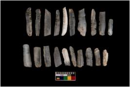 | Description / विवरण | These are 20 microlithic blades made on chalcedony. Among all, 8 are backed blades. |