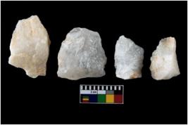 | Description / विवरण | There are n-4 of intact utilized flakes made up of Quartz. Some of them have bulge of percussion and some are flat flakes. |