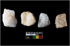 | Description / विवरण | There are n-4 of intact utilized flakes made up of Quartz. Some of them have bulge of percussion and some are flat flakes. |