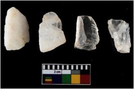 | Description / विवरण | There are n-4 of intact utilized flakes made up of Quartz. Some of them have bulge of percussion and some are flat flakes. |