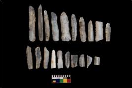 | Description / विवरण | These are 20 microlithic blades made on chalcedony. Among all, 3 are backed blades, 3 denticulated blades and 2 crested guiding ridge blades. |