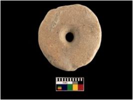 | Description / विवरण | A partially broken specimen of a grey ware circular shaped terracotta perforated disc with uneven perforation. It is having rough surface on both the end. It is made from medium - coarse clay. |