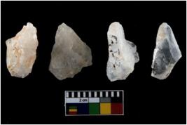 | Description / विवरण | There are n-4 of intact utilized flakes made up of Quartz. Some of them have bulge of percussion and some are flat flakes. |