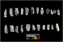 | Description / विवरण | A set of 20 intact microlithic blades, made of quartz. All these blades have retouching and sharp edges. |