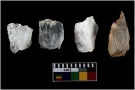 | Description / विवरण | There are n-4 of intact utilized flakes made up of Quartz. Some of them have bulge of percussion and some are flat flakes. |