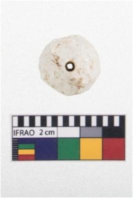 | Description / विवरण | Rounded bead with central perforation. It has irregular body. |
