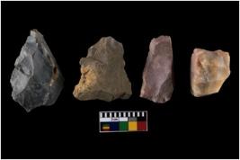 | Description / विवरण | There are n-4 of intact utilized flakes made up of Quartz. Some of them have bulge of percussion and some are flat flakes. |