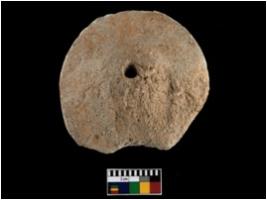 | Description / विवरण | A partially broken specimen of a red ware terracotta toy wheel . It is having projecting hubs at the perforation. It is well fired with rough surface |