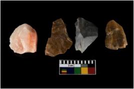 | Description / विवरण | There are n-4 of intact utilized flakes made up of Quartz. Some of them have bulge of percussion and some are flat flakes. |