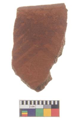 | Description / विवरण | Specimen of red ware with decorative geometric Net Pattern painting. |