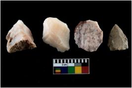 | Description / विवरण | There are n-4 of intact utilized flakes made up of Quartz. Some of them have bulge of percussion and some are flat flakes. |