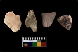 | Description / विवरण | There are n-4 of intact utilized flakes made up of Quartz. Some of them have bulge of percussion and some are flat flakes. |