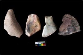| Description / विवरण | There are n-4 of intact utilized flakes made up of Quartz. Some of them have bulge of percussion and some are flat flakes. |