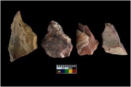 | Description / विवरण | There are n-4 of intact utilized flakes made up of Quartz. Some of them have bulge of percussion and some are flat flakes. |