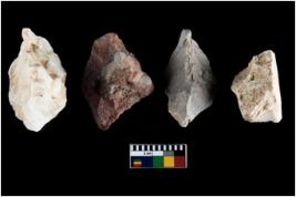 | Description / विवरण | There are n-4 of intact utilized flakes made up of Quartz. Some of them have bulge of percussion and some are flat flakes. |