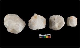 | Description / विवरण | There are n 4 Number of cores and are made up of Quartz. One of them is having impressions of crusted ridges over the body. |
