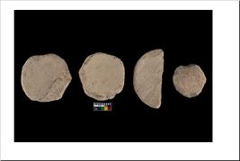 | Description / विवरण | One broken and Three complete specimen of disc. It is white in colour. |