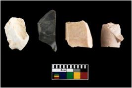 | Description / विवरण | There are n-4 of intact utilized flakes made up of Quartz. Some of them have bulge of percussion and some are flat flakes. |