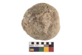 | Description / विवरण | A partially broken specimen of roughly round shaped hammer stone with battered periphery along with the circumference. |
