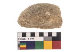 | Description / विवरण | A partially broken specimen of roughly round shaped hammer stone with battered periphery along with the circumference. |