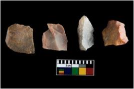 | Description / विवरण | There are n-4 of intact utilized flakes made up of Quartz. Some of them have bulge of percussion and some are flat flakes. |