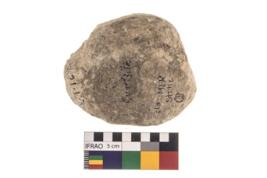 | Description / विवरण | A partially broken specimen of roughly round shaped hammer stone with battered periphery along with the circumference. |