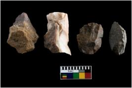 | Description / विवरण | There are n-4 of intact utilized flakes made up of Quartz. Some of them have bulge of percussion and some are flat flakes. |