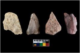 | Description / विवरण | There are n-4 of intact utilized flakes made up of Quartz. Some of them have bulge of percussion and some are flat flakes. |