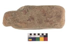 | Description / विवरण | A partially broken specimen of a oval shaped mueller stone with oval section. Prolonged used leads to a rounding and smoothening of the surface of the artifact. |