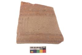 | Description / विवरण | Specimen of black on red ware with black decorative Vertical lines between horizontal lines geometric painting. |